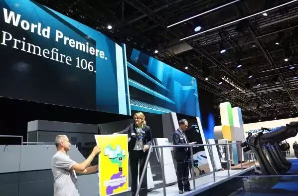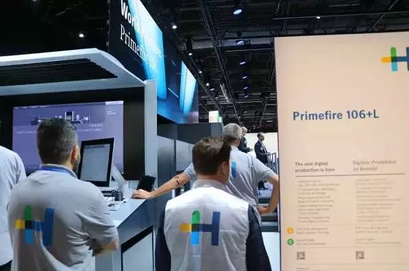 Lancement d'un nouveau produit, la presse d'impression numérique Primefire 106, trois bras robotiques qui contrôlent l'écran partagé répondent toujours au discours de l'hôte, et doivent dire qu '"ils sont vraiment doués pour jouer en ville".